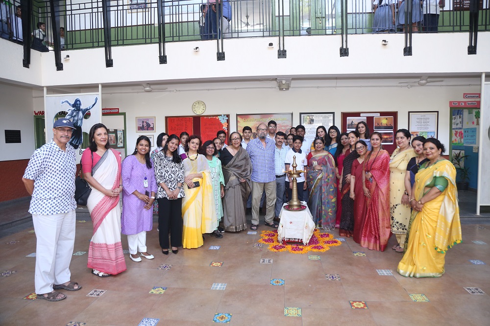 April 2023 - Farewell to Mrs. Shobha Rao after having given 33 years to the school, next to her Mrs. Anindita Das, Principal and Mrs. Aruna Naqvi, Founder/President